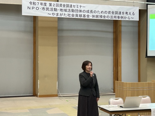 2025年11月18日、山形県三川町で開催された「資金調達セミナー」に当法人の和嶋事務局長が登壇しました。本セミナーはやまがた資金貢献基金や休眠預金の活用事例を紹介し、NPO・市民活動・地域活動団体の事業や活動のさらなる成長をめざすことを目的に、NPO法人市民社会サポートやまがたの主催で開催されました。山形県ではじめて採択された資金分配団体として採択された一般社団法人ユヌス・ジャパンと一般社団法人...